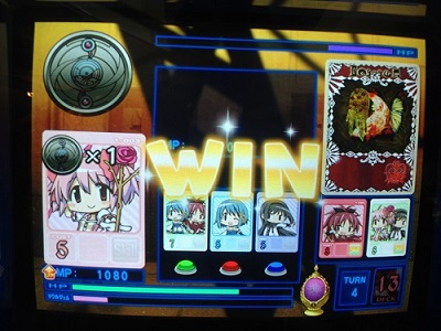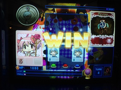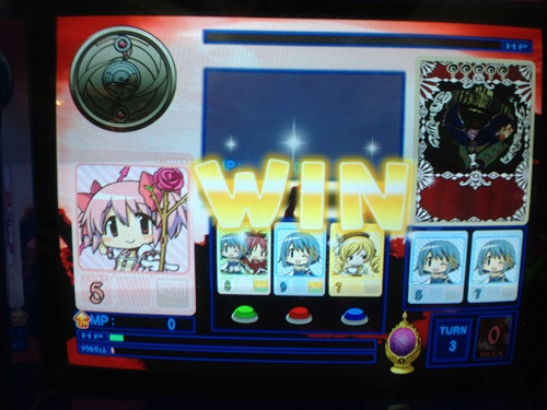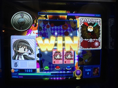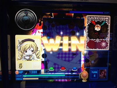 デッキのカードが全てなくなったが、まどかのMP30%UPスキル「私は魔法少女だから」とメインMP10%UPスキル「ある日の休息」、無意味だが「負ける気がしないわ」が発動し、撃破!!