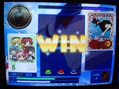 委員長の魔女を強化無しノーマルロケテカードほむらで撃破したやつ。デッキ切れも起こして、凄くいい勝負ができました。